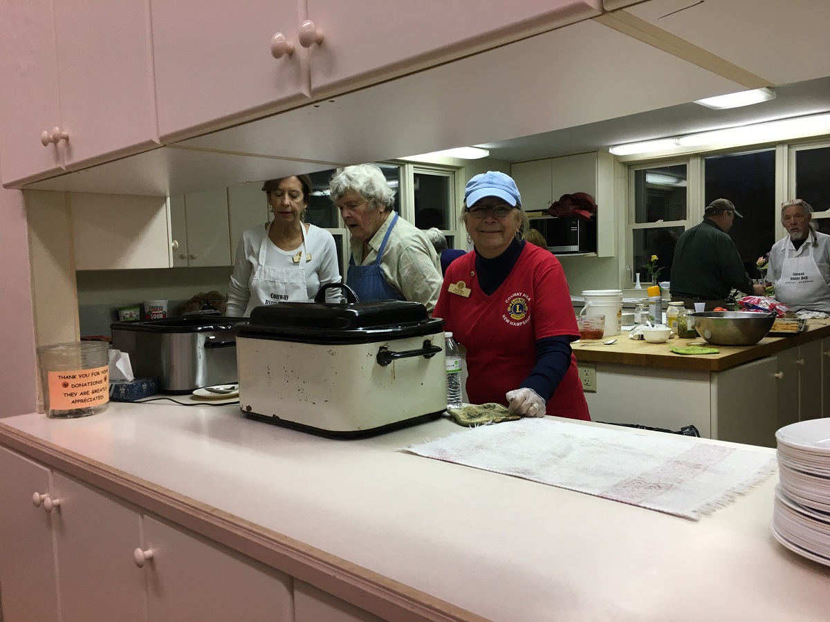 Conway Area Lions members helping cook and serve food at the Dinner Bell in Conway New Hampshire.